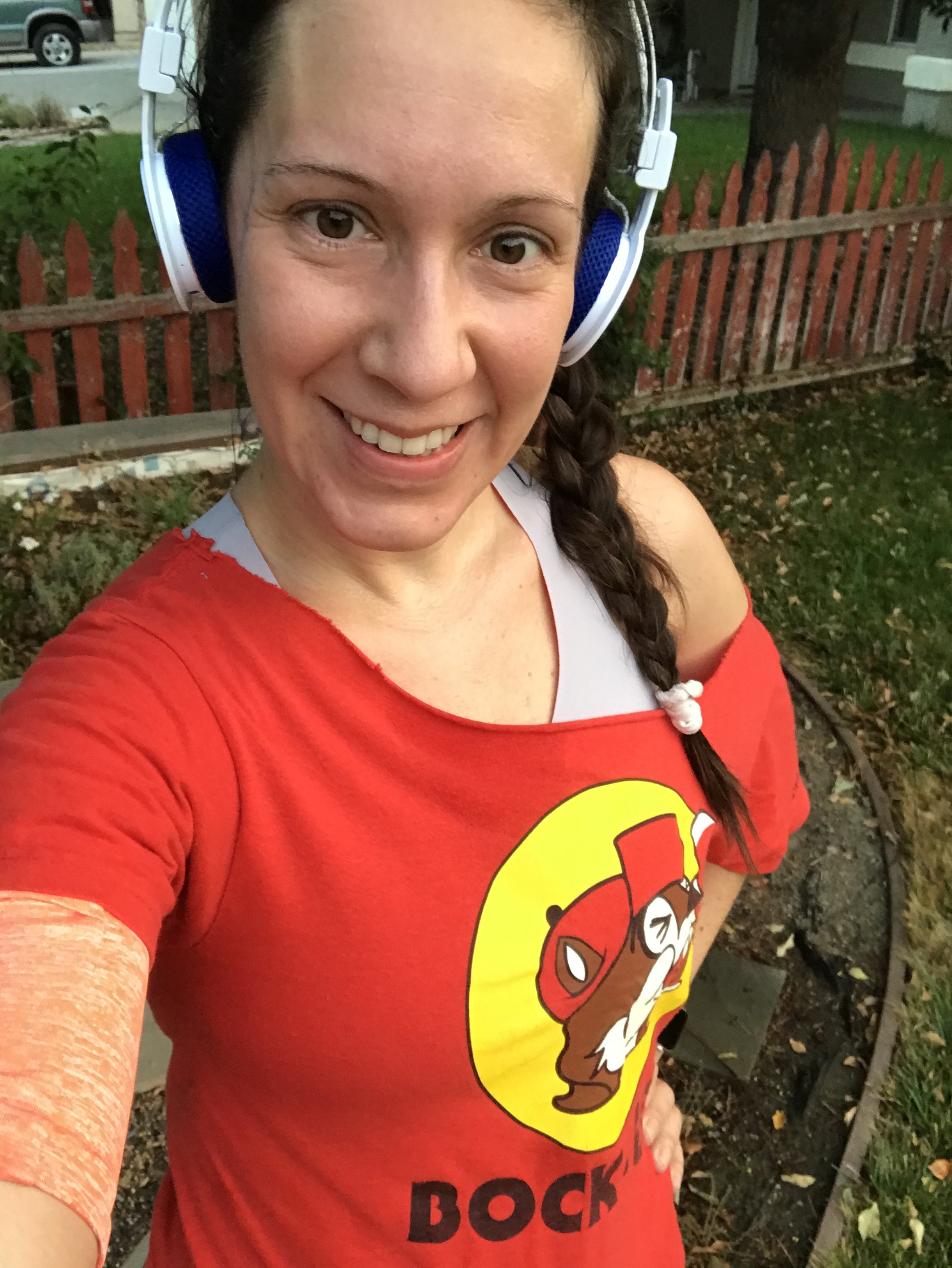 Shout out to my unsafe over-the-ear headphones and the cotton “Bock-ee’s” Rice U beer bike t-shirt.